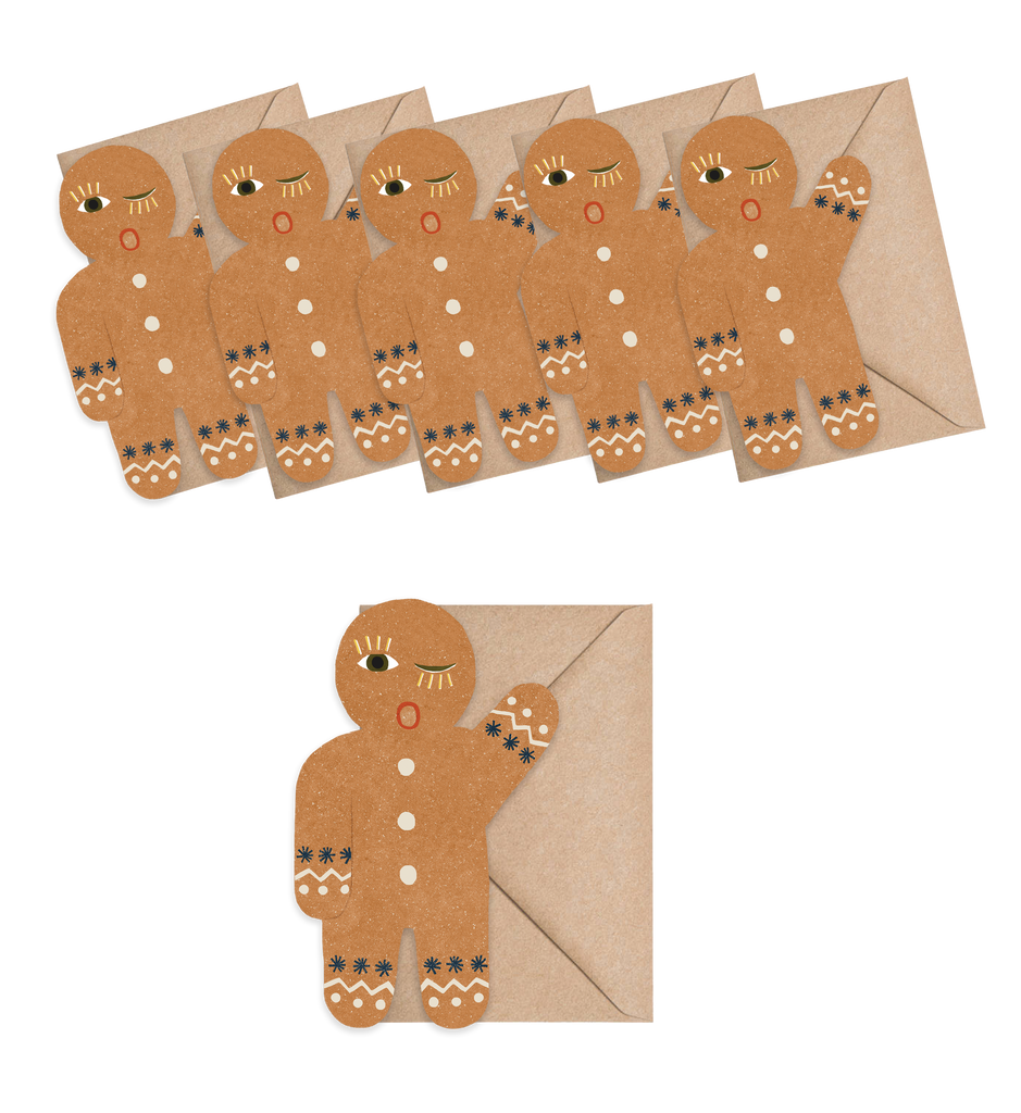 The Gingerbread Man now as a mini card! Perfect for tucking into gifts or adding a sweet handwritten note to your holiday table. Each box has 6 mini folded cards and matching kraft envelopes.